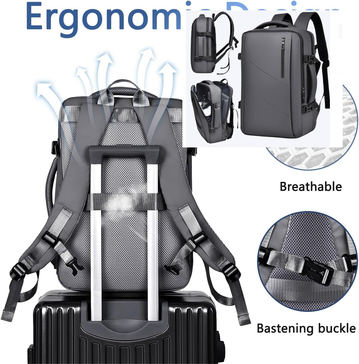 【Multi-function carry On Backpack】Travel laptop backpack of the back anti-theft pocket provides protection for your important items; Adjustable chest buttons and luggage straps makes the journey easier.