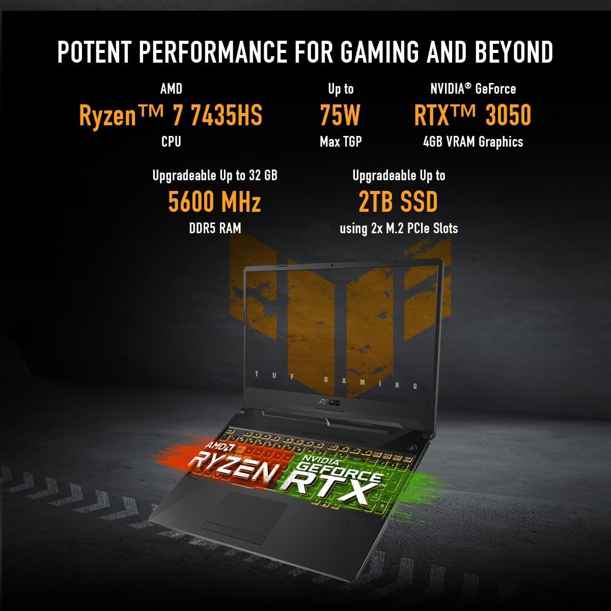 Tuf Gaming A15, AMD 7 7435Hs, 15.6-Inch, FHD 144Hz, Gaming Laptop (16GB RAM/512GB SSD Geforce RTX 3050/Windows 11/48WHR/Graphite Black/2.3 Kg), FA506NCR-HN054W