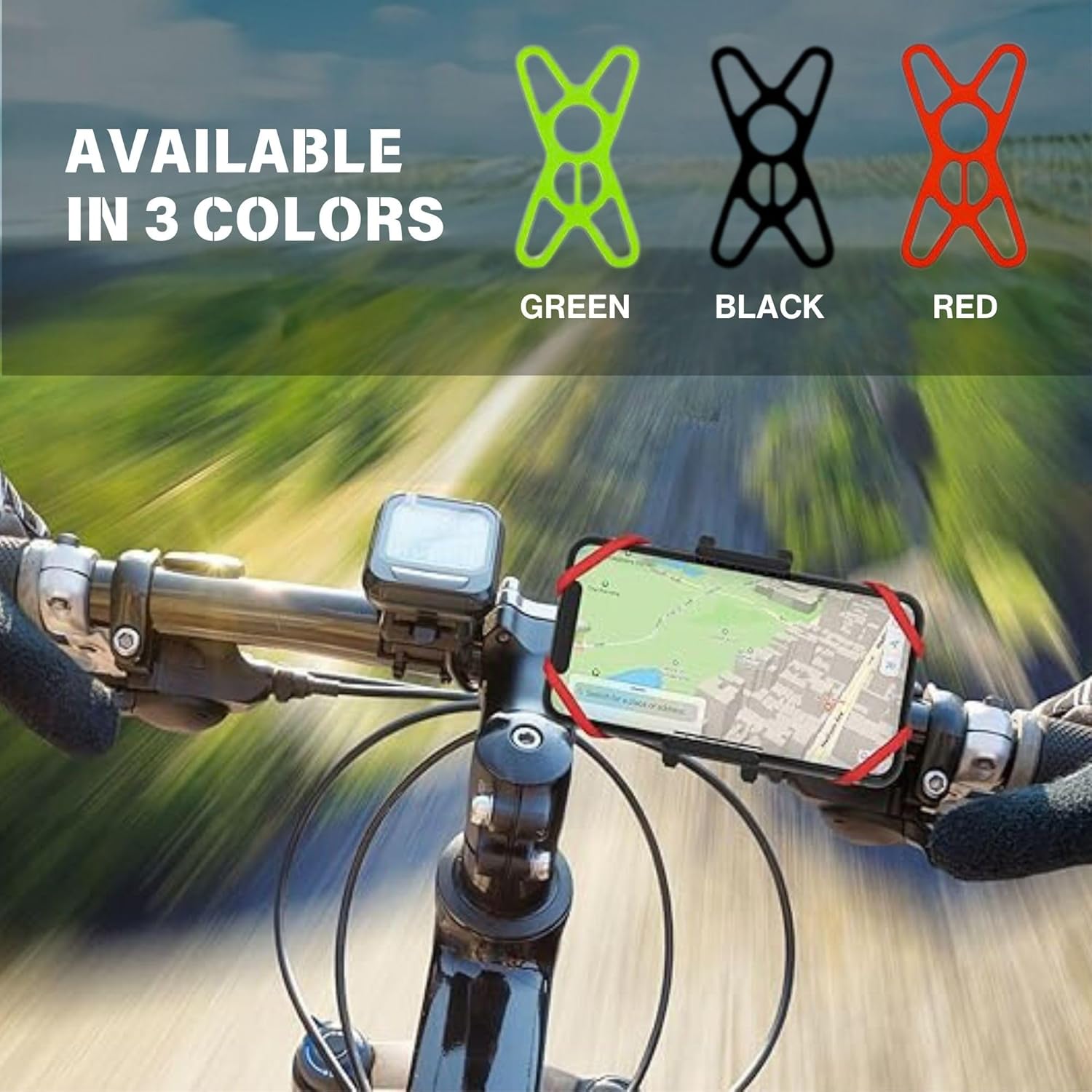 STANDOUT FROM THE CROWD: Crafted from high-quality, durable materials, our handlebar phone mount features three robust elastic silicone bands keeping your screen unobstructed. Our phone holder for bike handlebar allows you to navigate without compromising visibility.