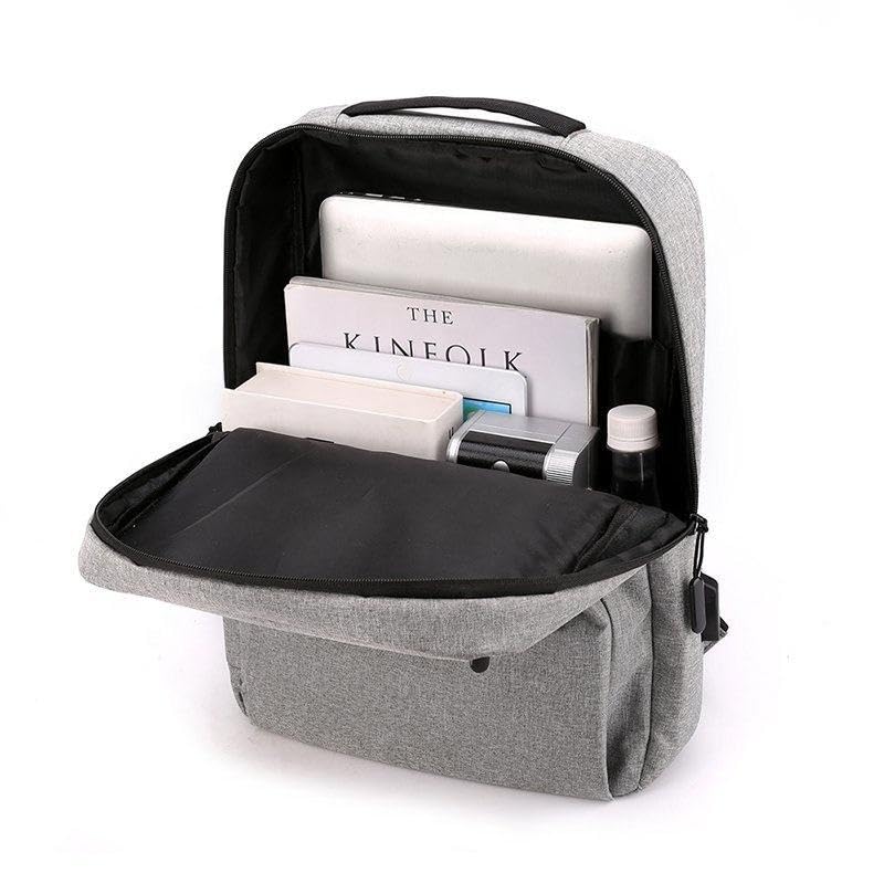 Unisex Laptop Backpack is a practical everyday bag for office workers, students, travellers and anyone who needs a durable, well-organised laptop bag. It features two spacious compartments that can easily hold a 15.6-inch laptop, books, folders, clothes, lunch box and other essentials. The interior layout keeps everything neatly arranged for quick access. The backpack includes a USB charging port, allowing you to charge your phone on the go using your power bank inside (power bank not included). Soft, adjustable padded shoulder straps and a breathable back panel ensure comfort during long hours of use in college, office or travel. Made with durable fabric, smooth zippers and reinforced stitching, this laptop bag is designed to withstand daily use, study sessions, office work and short trips. Its clean unisex design suits men, women, boys and girls and matches both formal and casual outfits. The two front pockets keep small items like keys, pens, chargers, earphones, ID cards and phones within easy reach, while the side pocket securely holds your water bottle. A comfortable top handle allows convenient hand-carry when needed. This lightweight, functional laptop backpack is ideal for office travel, college, coaching, business meetings, flights, train journeys and daily commuting—combining style, comfort and useful features for your everyday routine.
