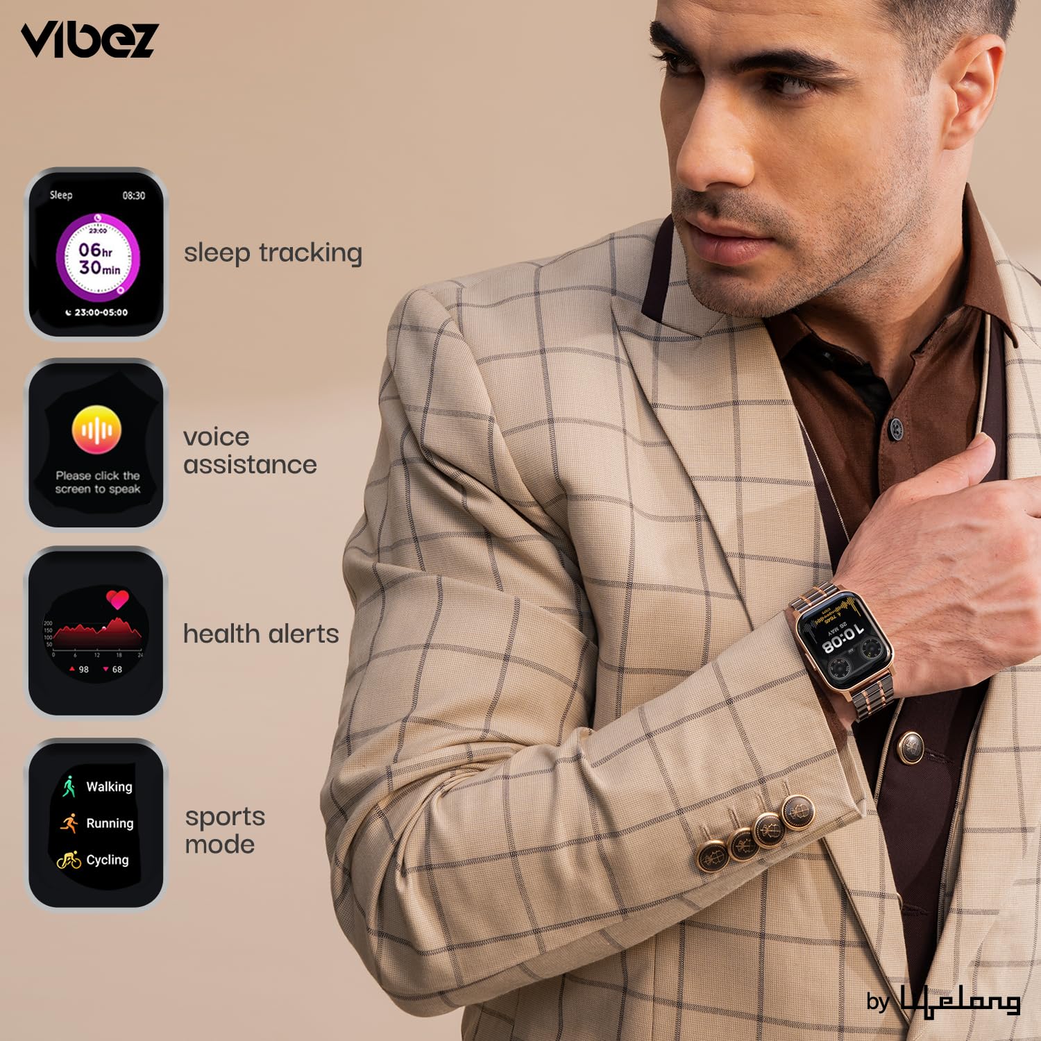Vibez by Lifelong Imperial Smart Watch VBSW2121 with Bluetooth Calling