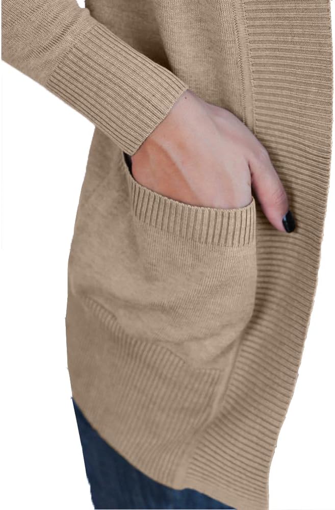 VOIANLIMO Women’s Open Front Casual Long Sleeve Knit Classic Sweaters Cardigan with Pockets