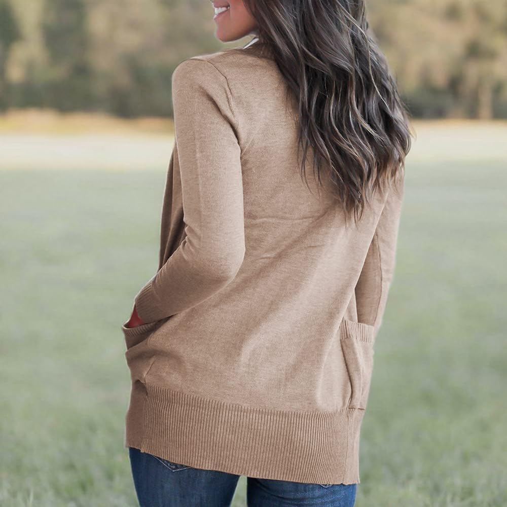 VOIANLIMO Women’s Open Front Casual Long Sleeve Knit Classic Sweaters Cardigan with Pockets
