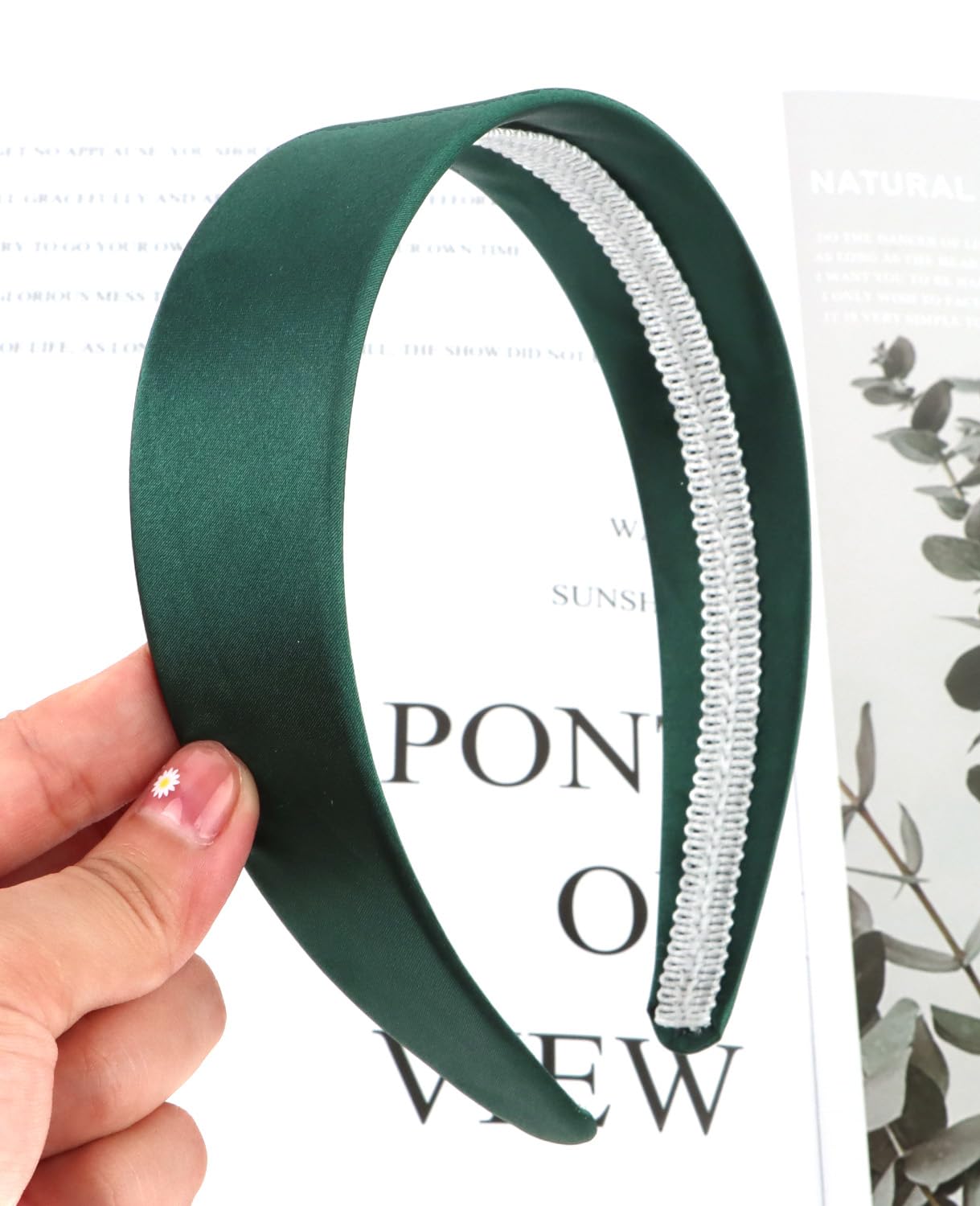 Wecoe Dark Green Satin Headband Women 1.6 Inch Wide Silk Headband Non Slip Fashion Plain Head Band Solid Hair Band DIY St Patrick’s Day Hair Accessories for Women Girls Diademas Para Mujer Gifts