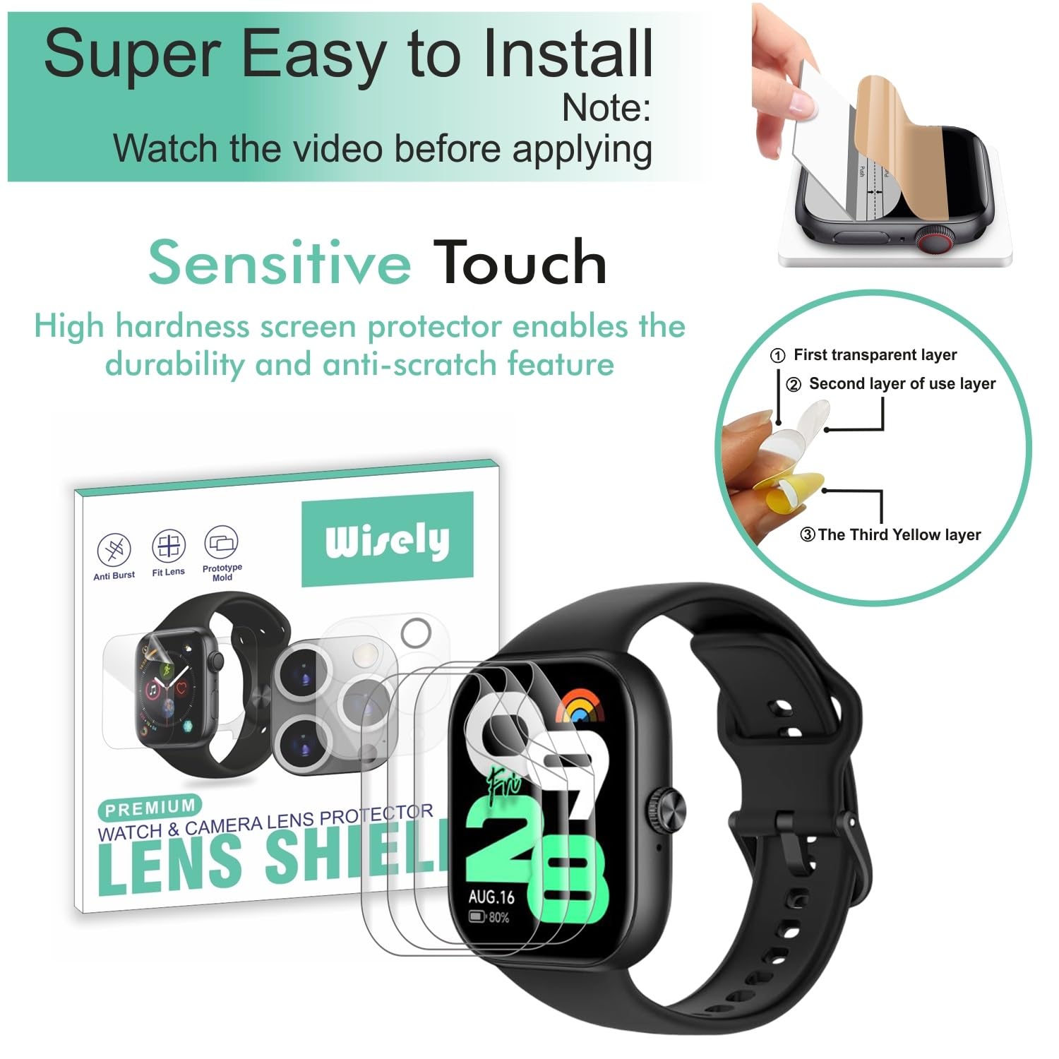 Wisely Screen Guard Protector Compatible For Redmi Watch Move Smartwatch 1.85 inch, Bubble Free Easy installation, HD Clear, edge to edge Full Cover smart watch screen guard. Easy Installation: Wisely provides you easy step installation kit, video and best customer support.