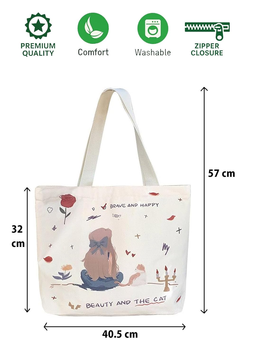 With its large capacity, this tote bag offers plenty of space to accommodate your books, notebooks, laptop, essentials, and more, making it perfect for college or office use.