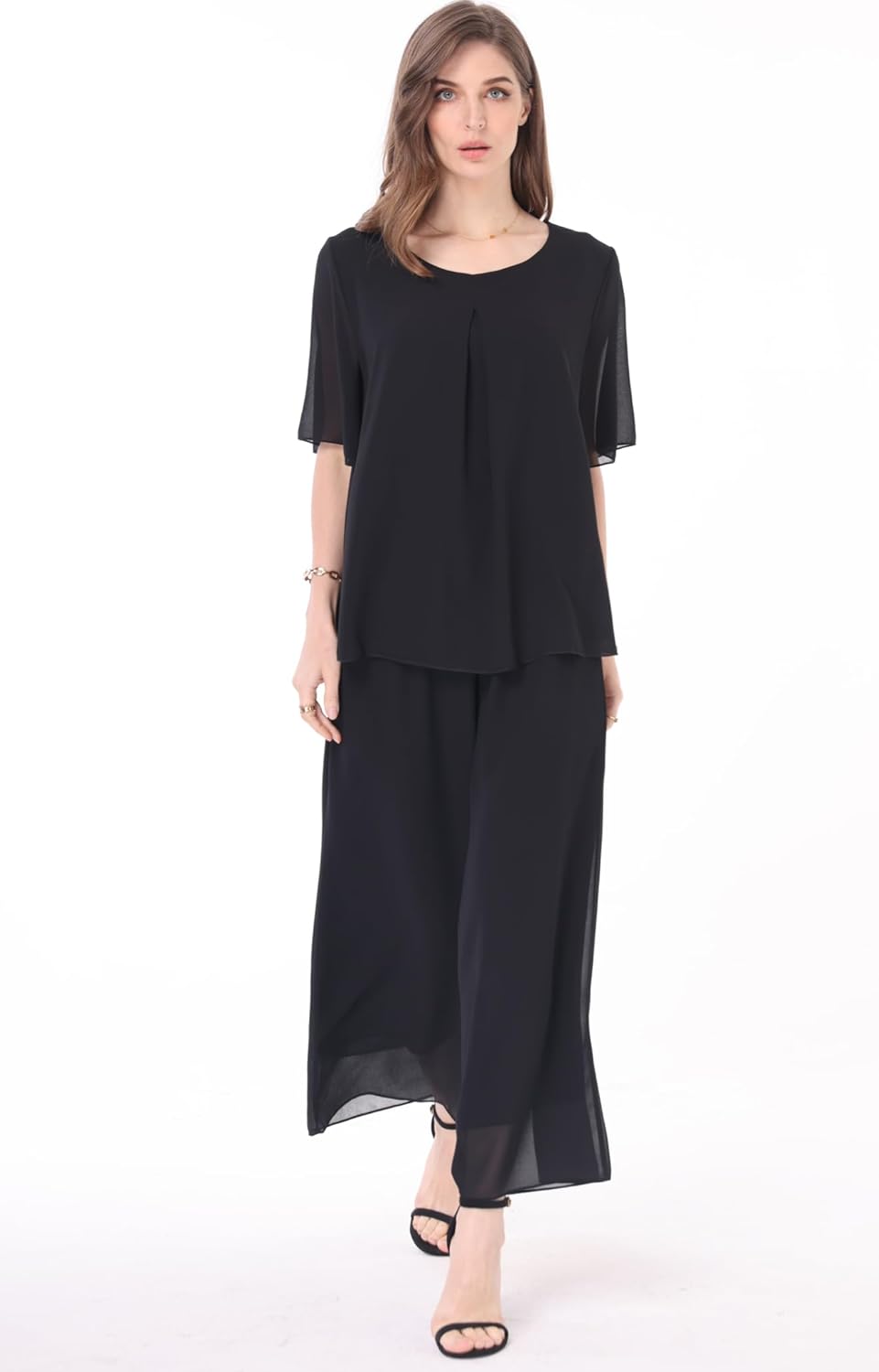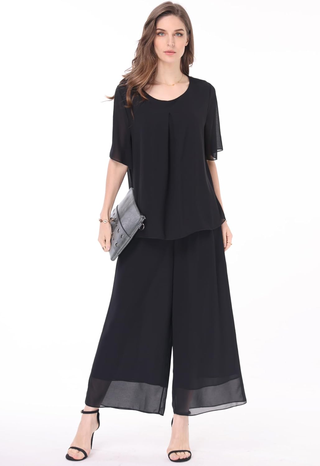 Customers find the pantsuit’s fabric gorgeous and appreciate its lightweight design and reasonable price point. The outfit looks great for weddings and dressy events, and customers describe it as comfortable. However, the sizing receives mixed feedback, with several customers noting that the top runs large.