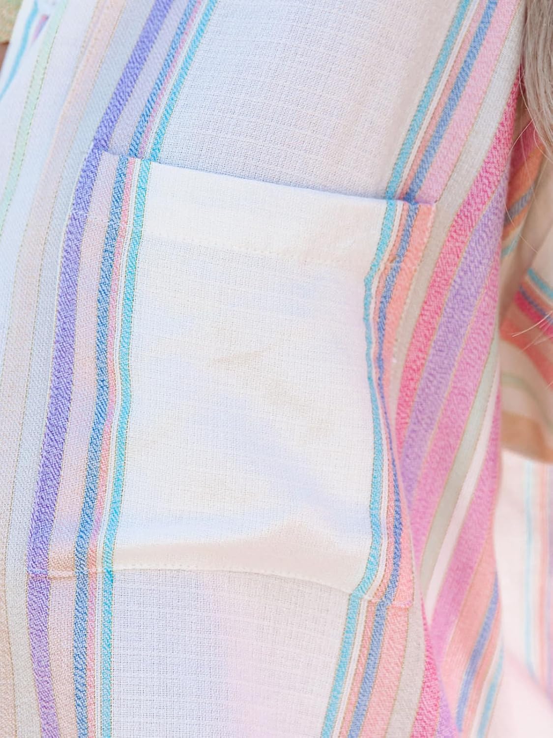 Rainbow Striped Button Shirt With Pocket Summer Linen Beach Shirt