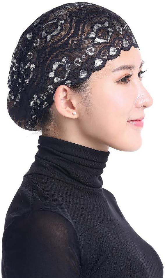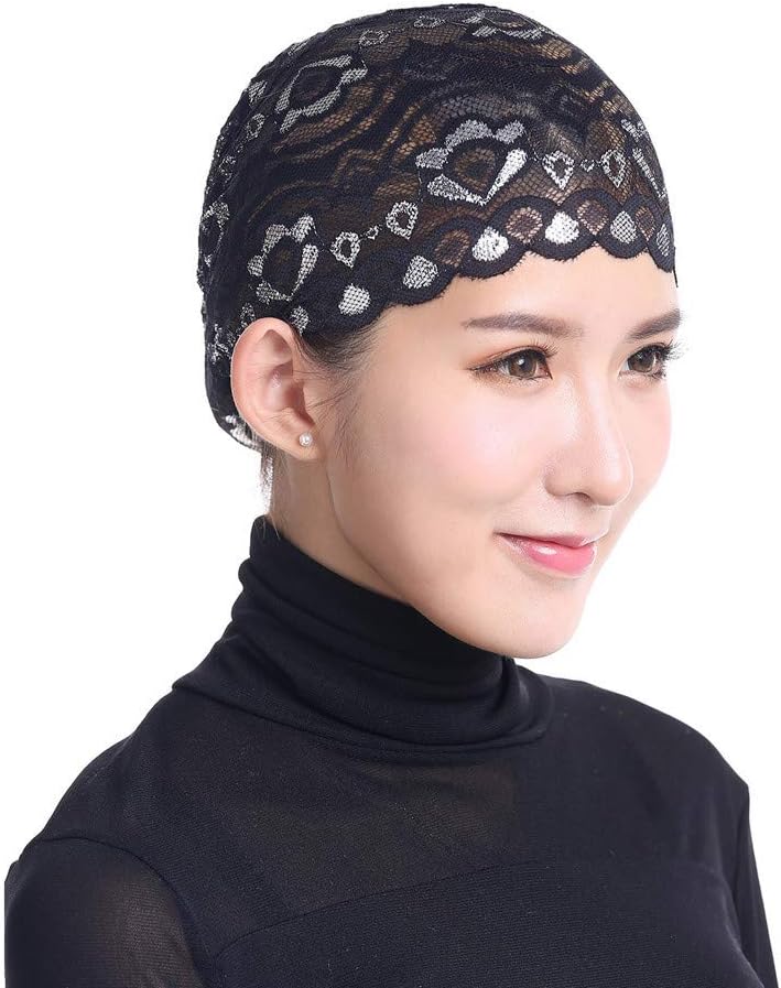 Womens Lace Breathable Head Scarf Wrap Muslim Cap Solid Cotton Breathable Soft Quick Dry Lightweight