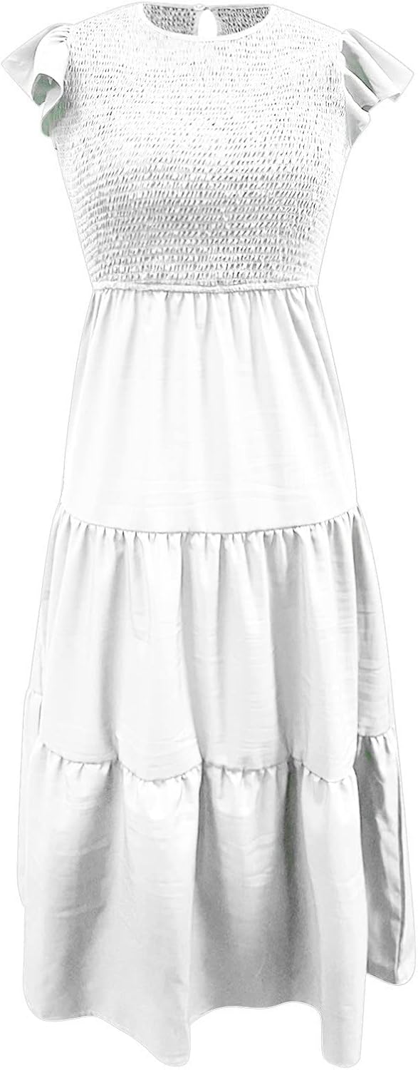 Women’s Summer Floral Boho Dress Wrap V Neck Short Sleeve Ruffle A-Line Flowy Maxi Wedding Guest Dresses