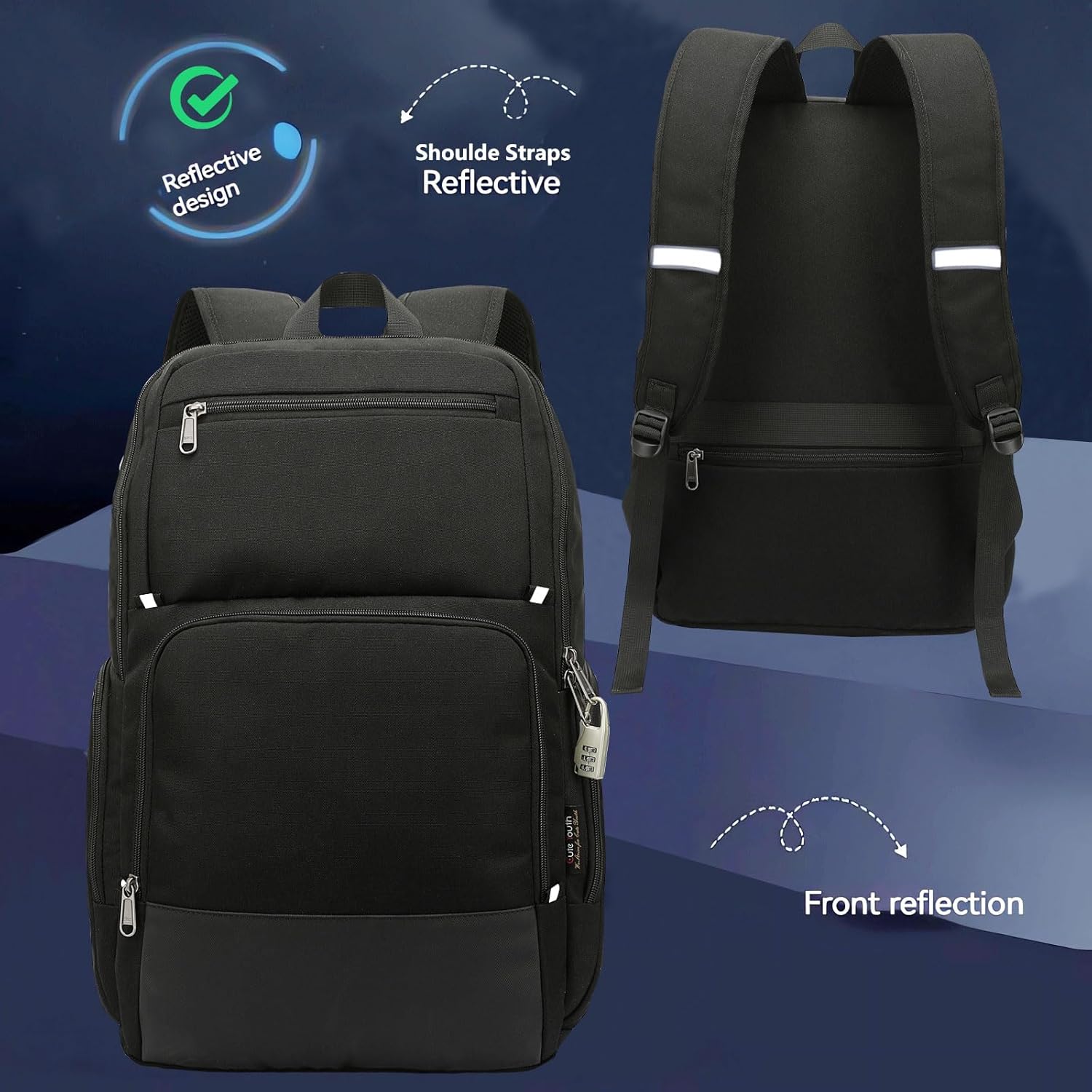 Features 6 spacious compartments and up to 15 additional pockets, allowing for organized storage of laptops, folders, and personal items. Includes an independent anti-theft combination lock and a secure back zipper compartment to keep valuables safe and easily accessible.