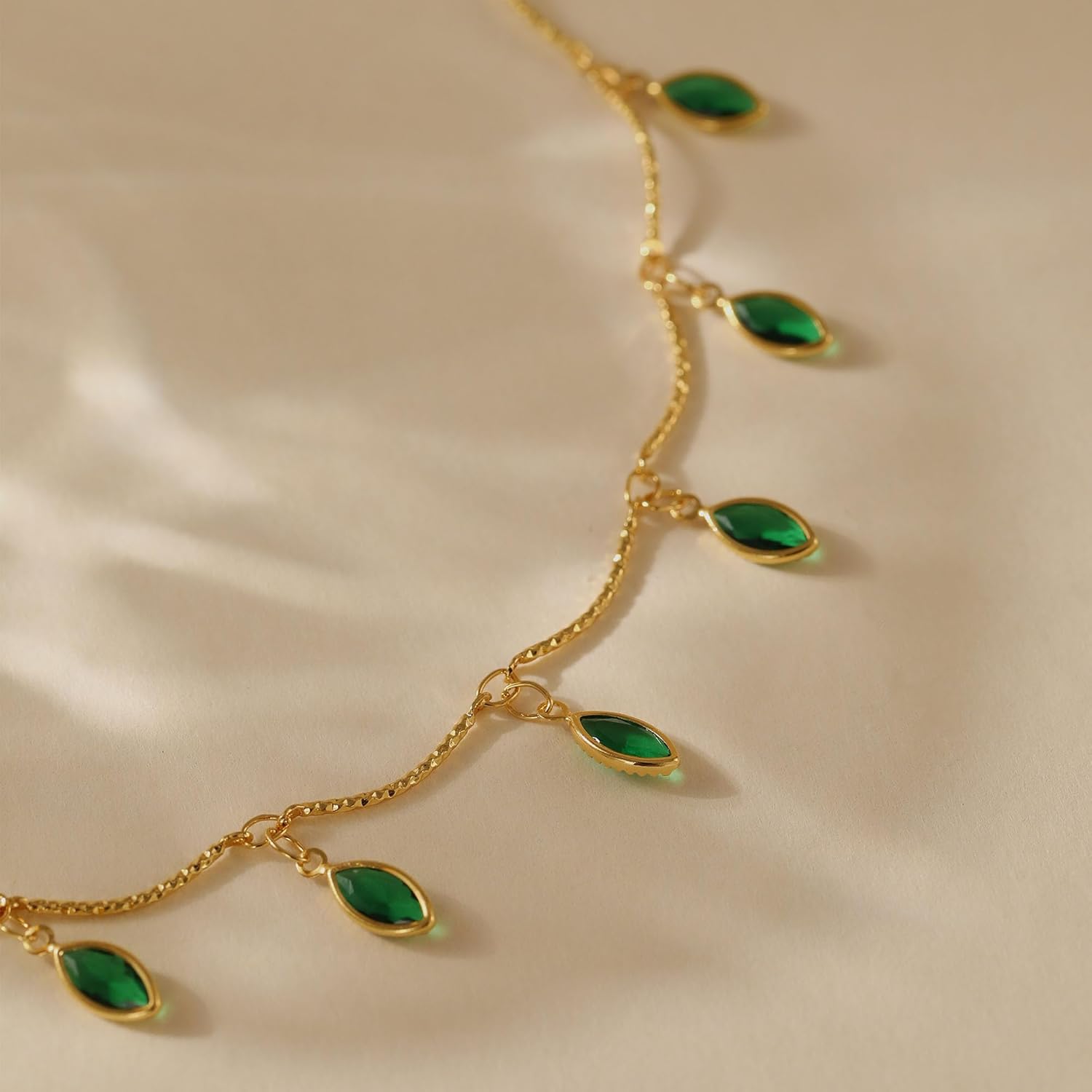This elegant 18K gold-plated emerald anklet is the perfect addition to your jewelry collection, a perfect combination of luxury and style. Each green rhodonite on the anklet exudes a unique sparkle, adding a touch of color to your look. Whether for everyday wear or a special occasion, this anklet will perfectly complement your outfit and show your unique charm.